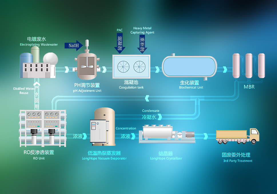 本公司研發(fā)的熱泵驅(qū)動(dòng)<無(wú)熱源>蒸發(fā)器可顯著減少工業(yè)廢液處置費(fèi)用,可獲取85-95%的蒸餾液回收再利用,小部分的濃縮液(約占原液的5-15%)富集了鹽分或重金屬必須另外處置。在材料表面處理行業(yè)